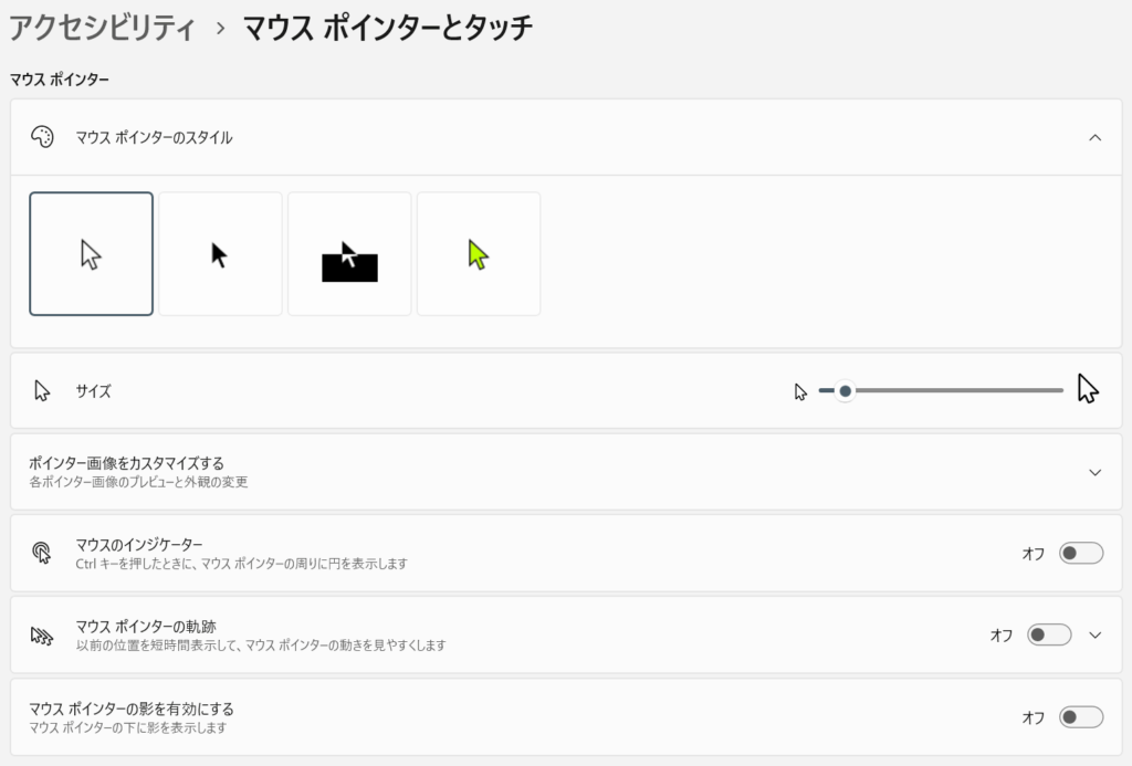 マウスポインタ―の矢印のサイズを、もーっと大きくして見やすくすることもできますよ。